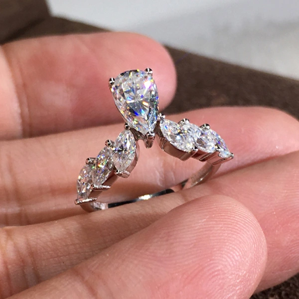 خاتم جديد رائع من الزركون على شكل دمعة على شكل كمثرى للنساء، خاتم خطوبة نسائي عصري