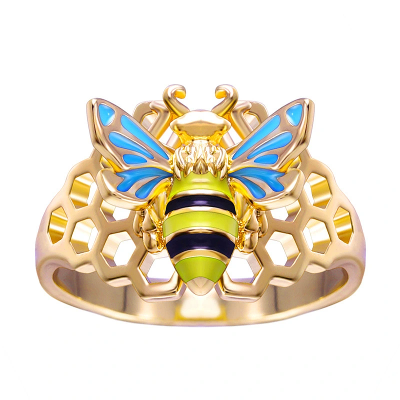 خاتم جديد ساخن للبيع بالجملة على شكل نحلة عسل إبداعي مجوف خاتم حشرة هندسي خاتم إصبع مجوهرات