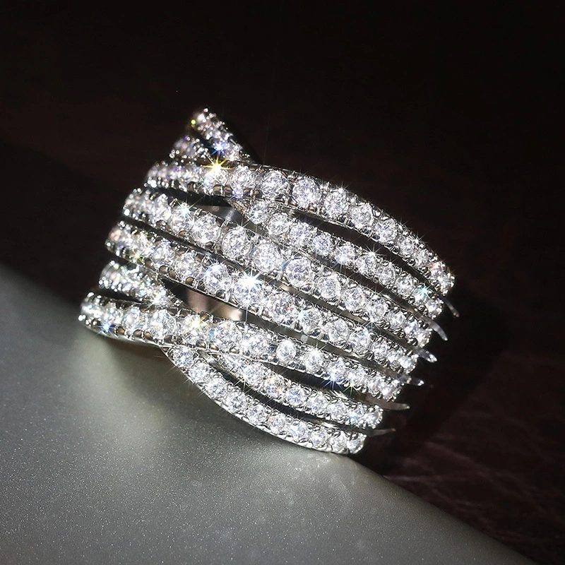 خاتم جديد على الطراز الأوروبي والأمريكي للنساء، لامع، نمط فاخر خفيف، مجوهرات راقية، مزاجه، نمط المشاهير على الإنترنت، تصميم متقاطع