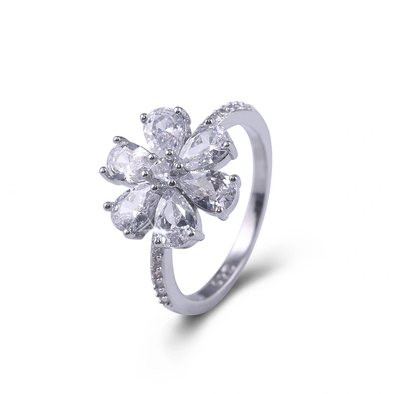 خاتم صغير فاخر فرنسي رائج البيع على شكل قطرة ماء على شكل زهرة خاصة خاتم إصبع السبابة للأميرة
