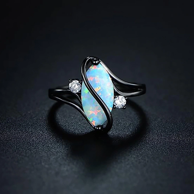 خاتم جديد على شكل عين حصان أوروبي وأمريكية على شكل حرف S ملتوي مبالغ فيه للرجال والنساء خاتم شخصية مقلد من حجر الأوبال
