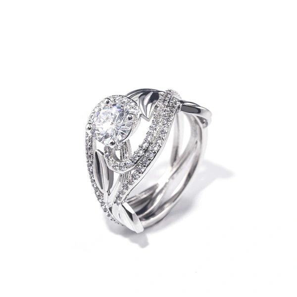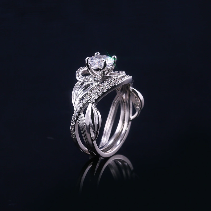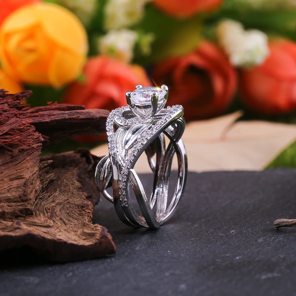 خاتم جديد على شكل ورقة كرمة متداخلة حول الخاتم الإبداعي مطلي بالنحاس والذهب الأبيض والماس والزركون ومجوهرات اليد