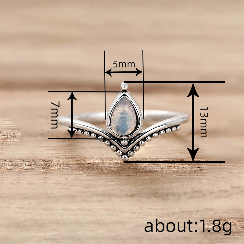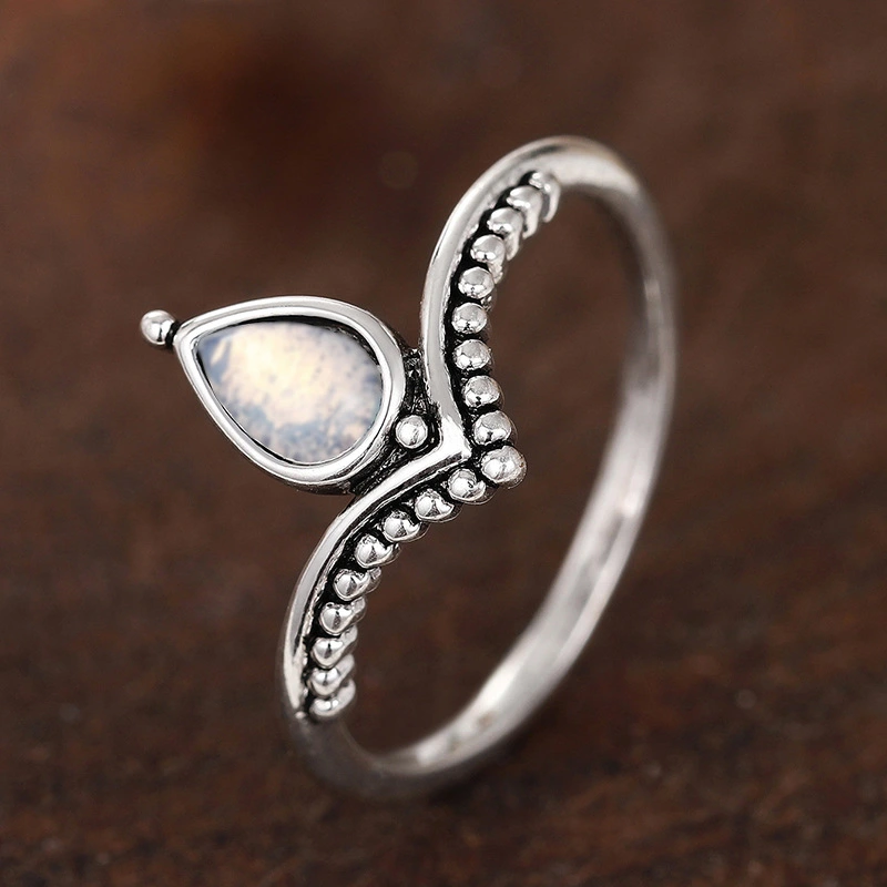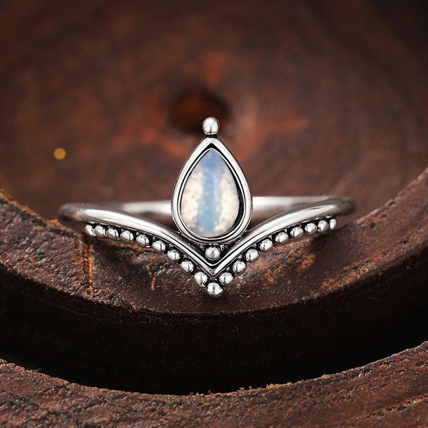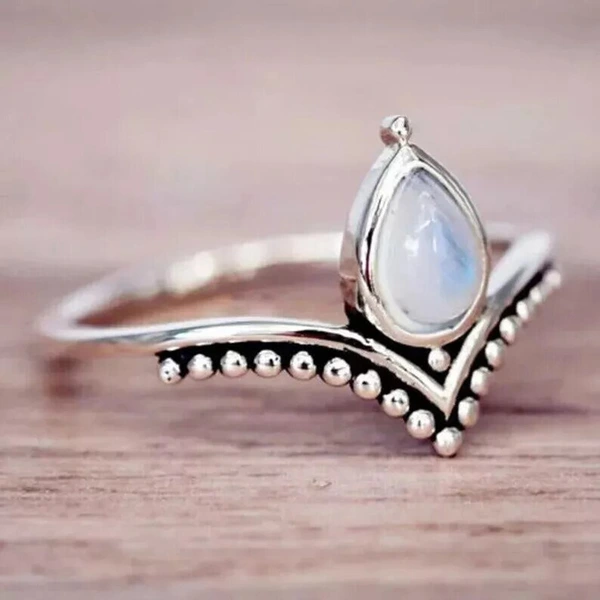 خاتم جديد للنساء، على شكل قطرة ماء، بتصميم بسيط، مجوهرات مستوحاة من حجر القمر، على شكل حرف V