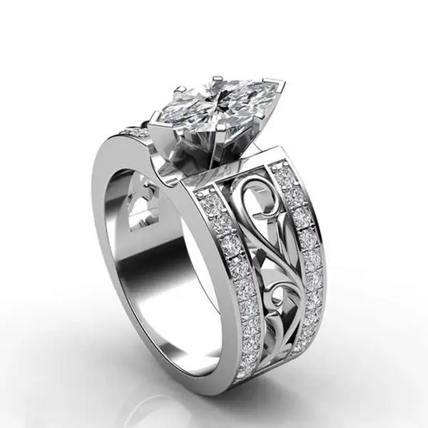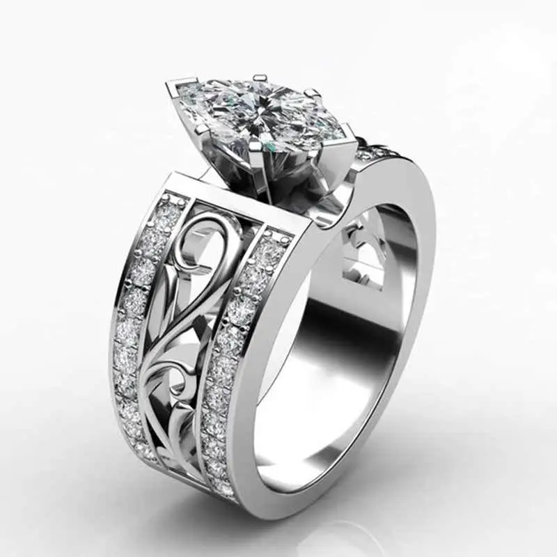 خاتم زفاف جديد من الزركون اللامع على شكل عين حصان إبداعي مجوهرات حية للنساء
