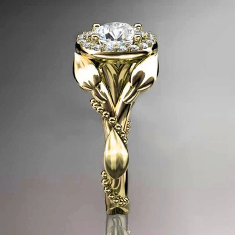 خاتم جديد مطلي بالذهب عيار 14 قيراطًا على شكل زهرة محظوظة مرصع بحجر الزركون من أوروبا وأمريكا للبيع بالجملة
