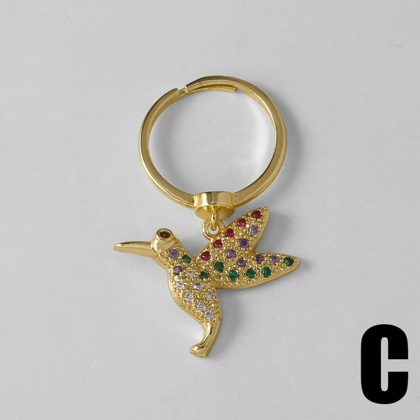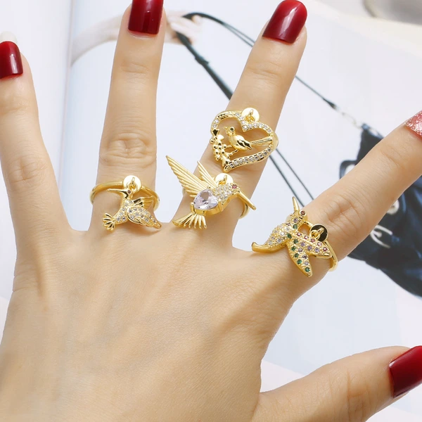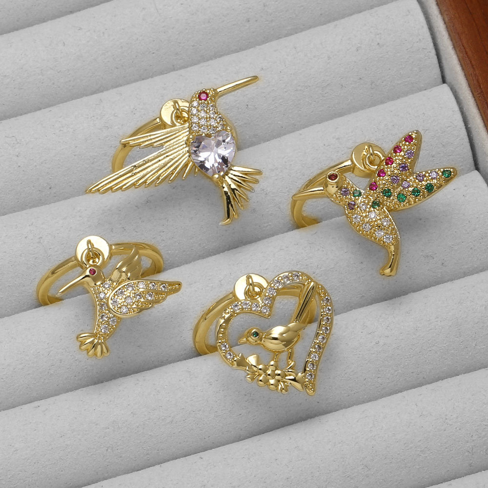 خاتم جديد من الذهب عيار 18 قيراطًا مطلي بالنحاس ومرصع بالزركون بالكامل على شكل طائر، خاتم قابل للتعديل للنساء من نوع rip88