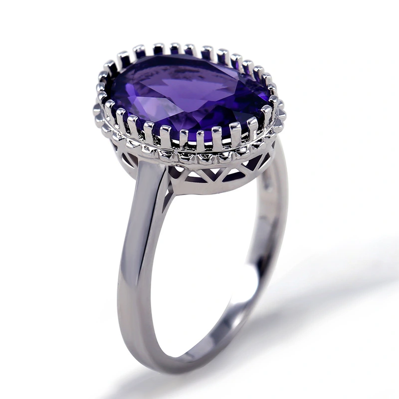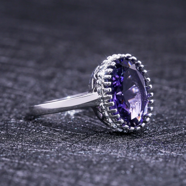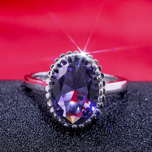 خاتم جديد من الزركون الأرجواني الكبير المرصع بالأحجار الكريمة للبيع الساخن خاتم ألماس بيضاوي الشكل من قيراط الإوزة الإبداعي للنساء