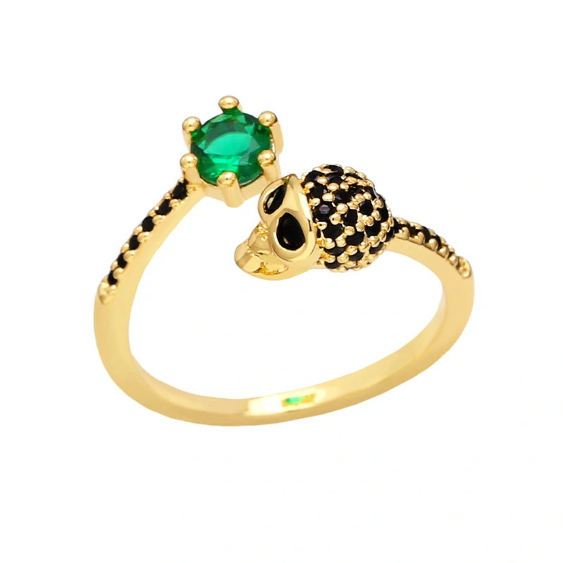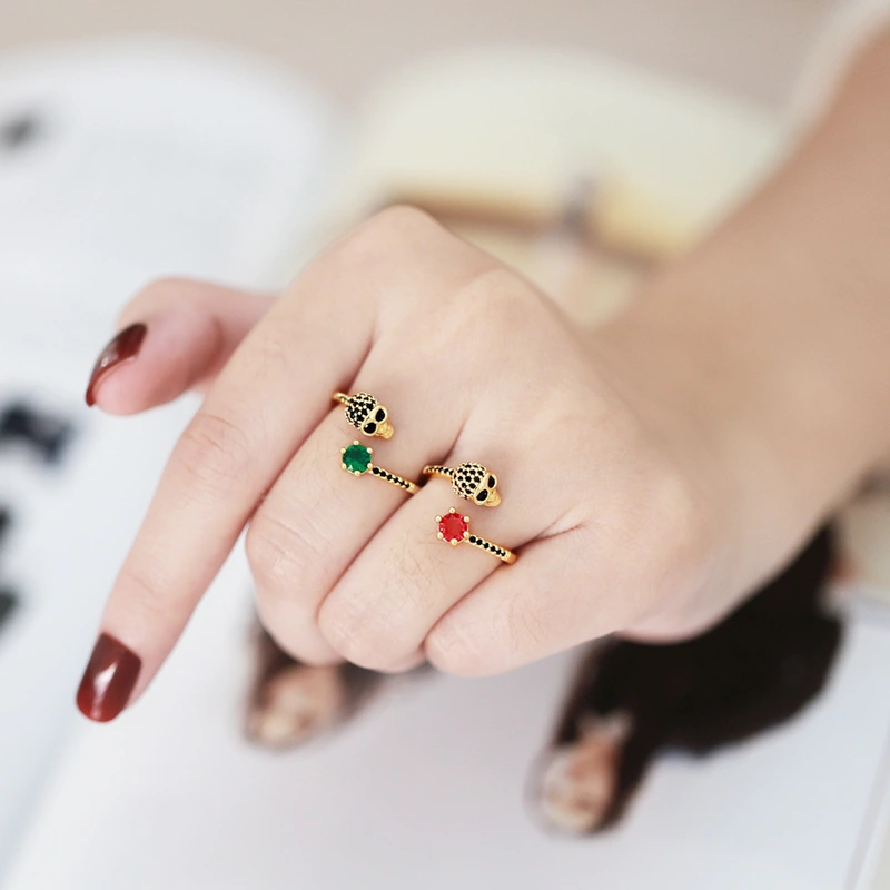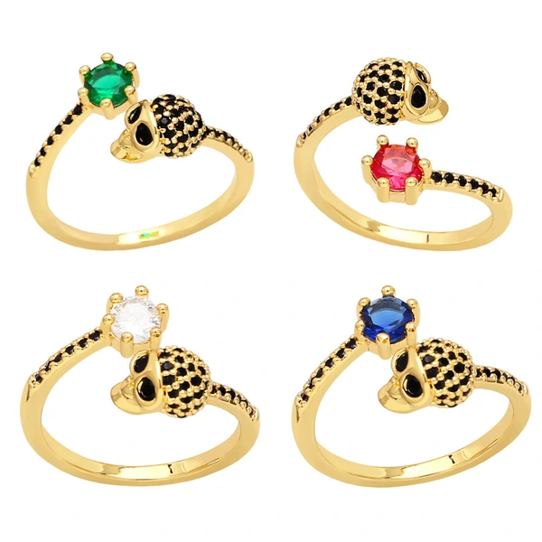 خاتم جمجمة معروض للبيع، خاتم مفتوح من الزركون بتصميم بانك هيب هوب أوروبي وأمريكي، rir94