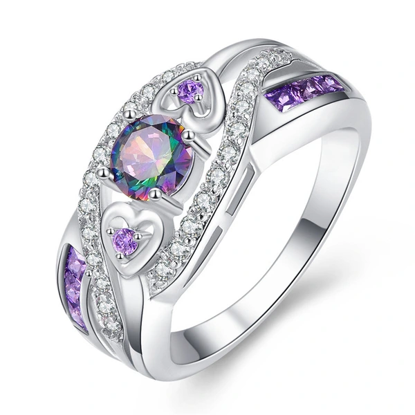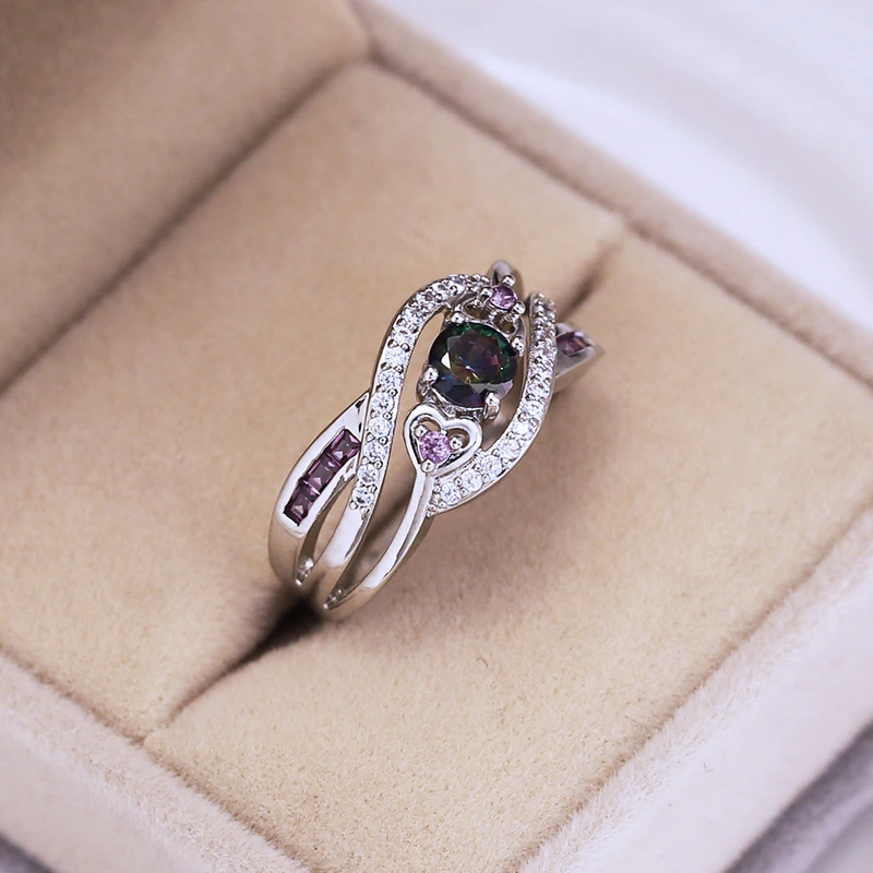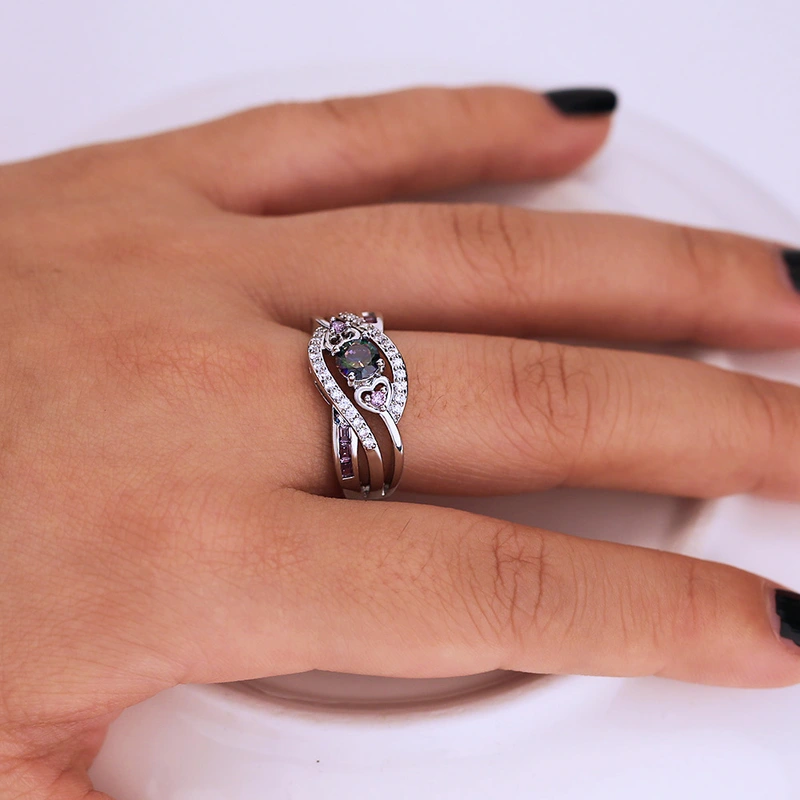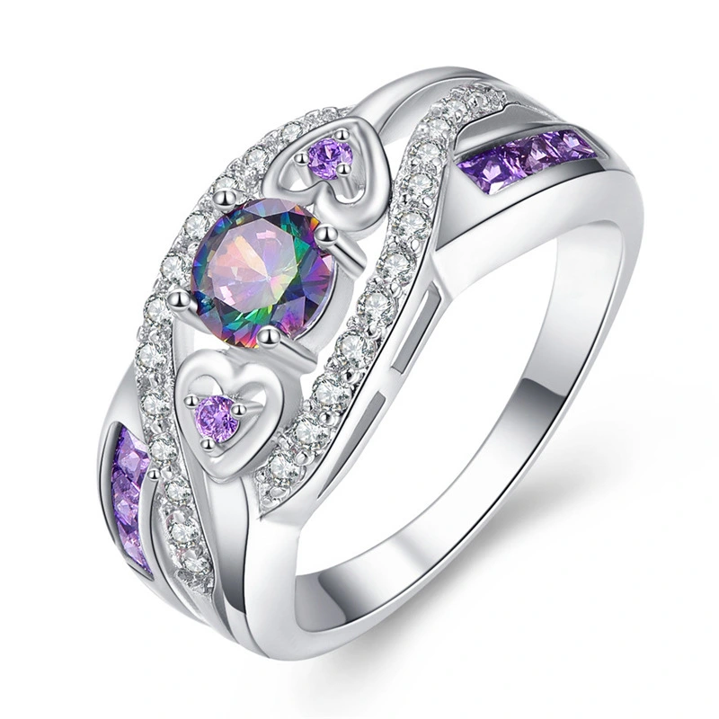 خاتم جمشت على شكل قلب الأكثر مبيعًا مصنوع من الذهب الأبيض والفضة مطلي بالزركون الملون الأوروبي والأمريكي مجوهرات يدوية