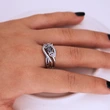 خاتم زهرة ميمونة محفورة بشكل كلاسيكي بتصميم عريض من خاتم مياو على الطراز العرقي من يونان، مجوهرات للرجال والنساء