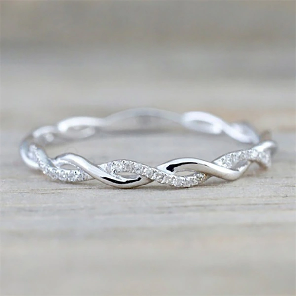 خاتم حبل ملتوي جديد للبيع الساخن خاتم شريط زركون دقيق رائع خاتم أنيق لشخصية الانضباط الذاتي خاتم الخنصر