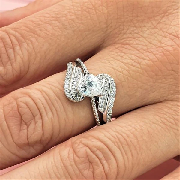 خاتم حب أوروبي وأمريكي بتصميم ذراع متأرجح وأجنحة ريشة ملاك على شكل قلب مجوهرات نسائية عصرية