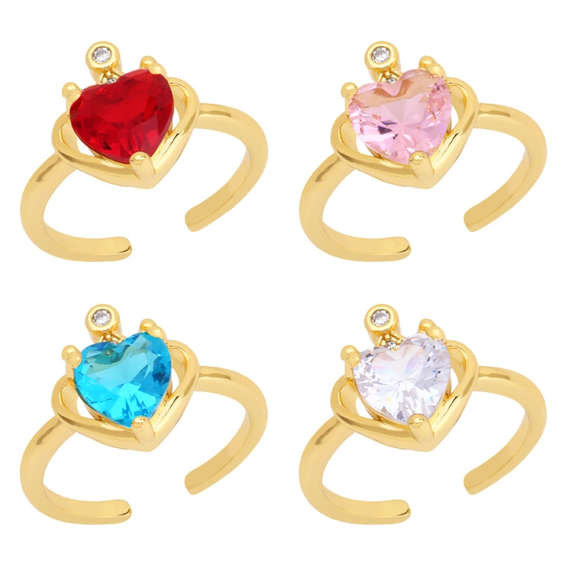 خاتم حب أوروبي وأمريكي عتيق، خاتم حب فاخر خفيف الوزن، تاج حب مرصع بالزركون، خاتم مفتوح rin96