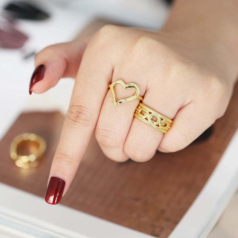 خاتم حب بسيط على الطراز الأوروبي والأمريكي بتصميم نيش أنثوي متقدم مطلي بالذهب من طبقتين rih75
