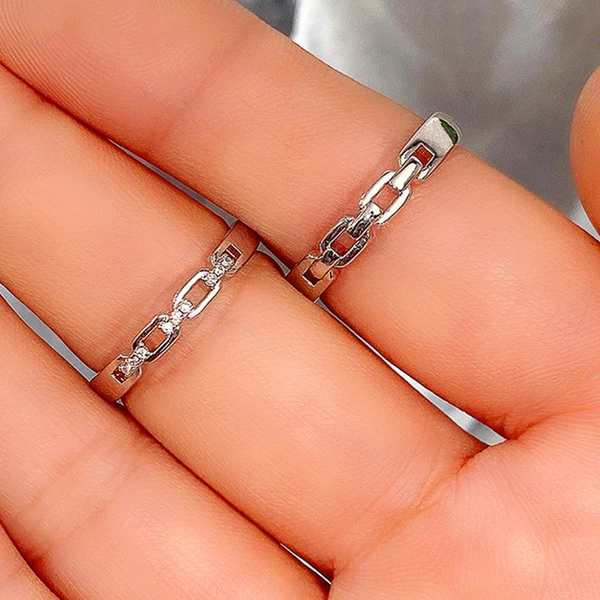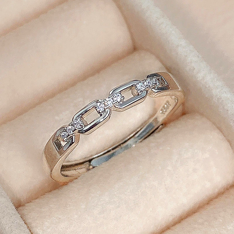 خاتم حب جديد على الطراز الكوري مضفر من الألماس والزركون، خاتم مجوف قابل للتعديل للزوجين