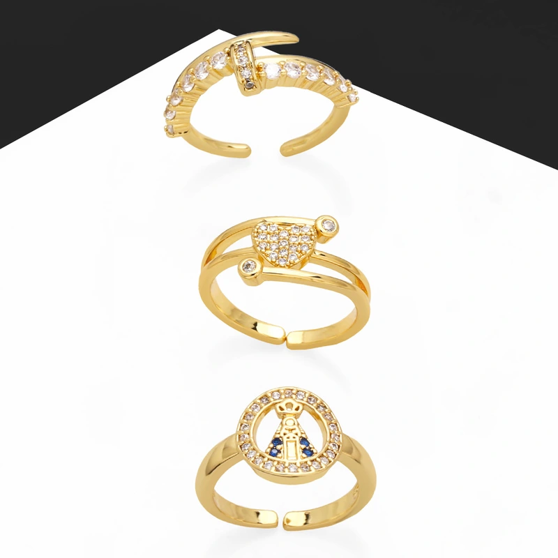 خاتم حب جذاب للبيع بسعر خاص خاتم مريم العذراء الإبداعي مزدوج الطبقات مطلي بالذهب مرصع بالزركون ris34