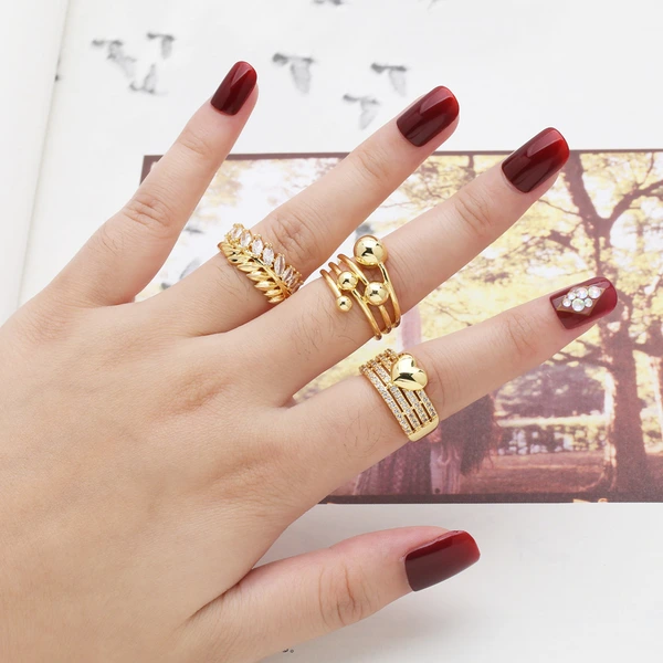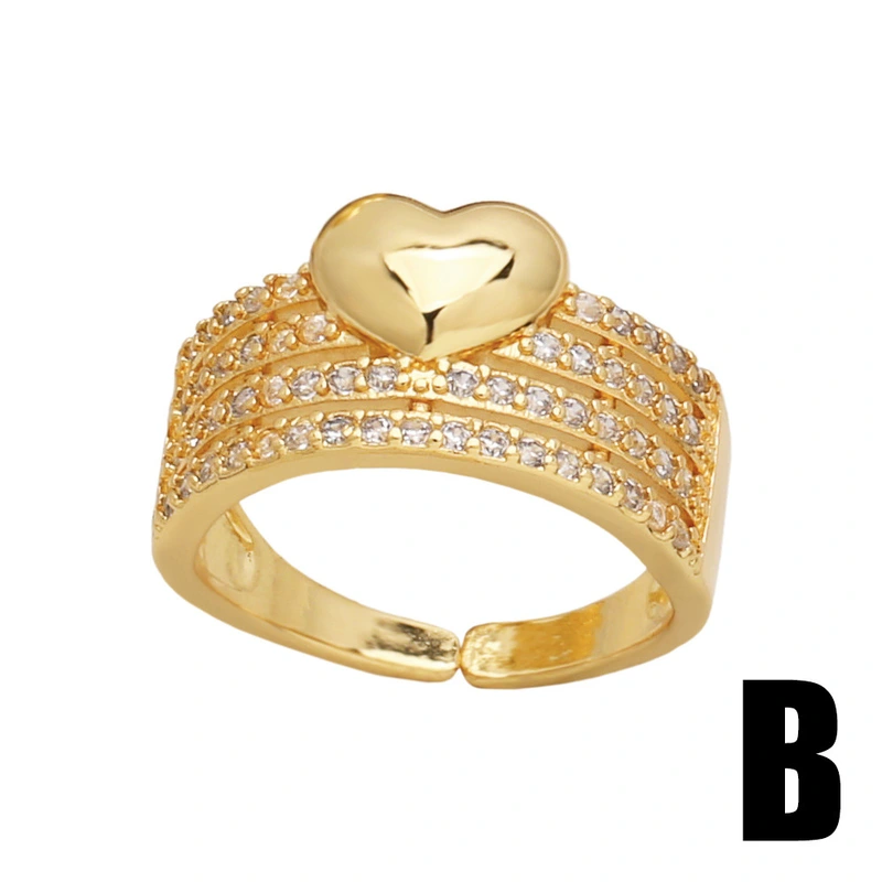 خاتم حب رائج البيع على الطراز الأوروبي والأمريكي خاتم مطلي بالذهب مرصع بالزركون مزدوج الطبقات للنساء ris27