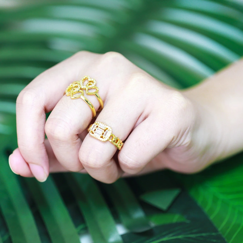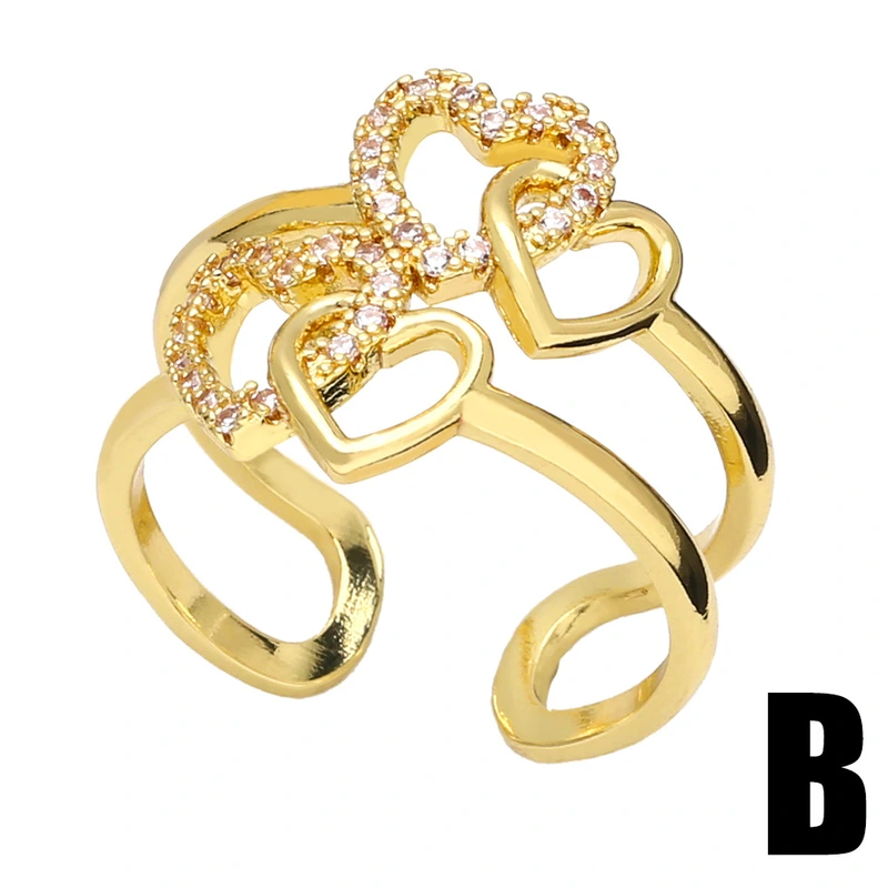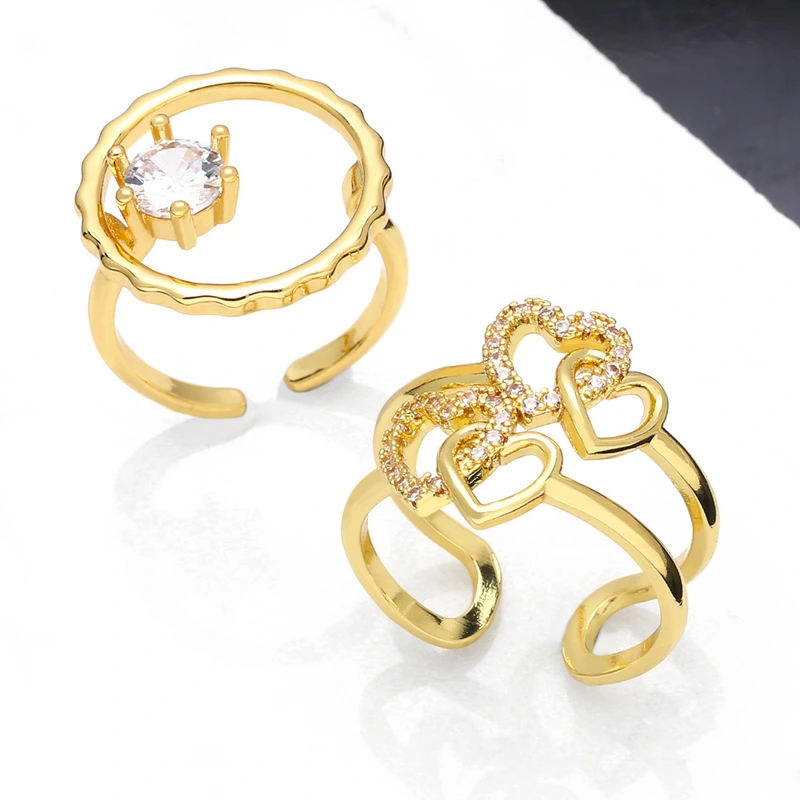 خاتم حب مزدوج الطبقات فاخر ومميز ومبالغ فيه على شكل دائرة مجوفة كبيرة من الزركون خاتم إصبع السبابة للنساء rip53