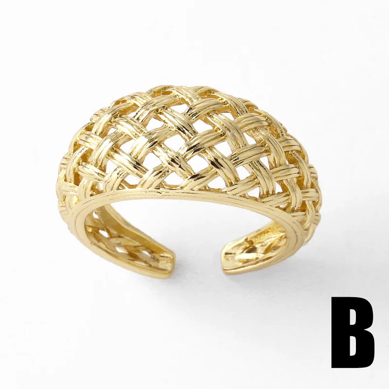 خاتم حب ناعم للبيع بالجملة من المجوهرات، مطلي بالنحاس عيار 18 قيراطًا مرصع بالزركون، خاتم مجوف rih01