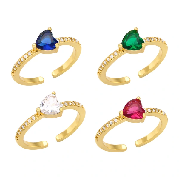 خاتم حب هندسي رائج البيع أوروبي وأمريكي بسيط على شكل قلب من الزركون خاتم مزاجي عصري riq69
