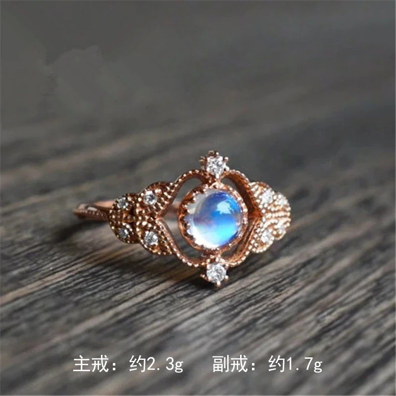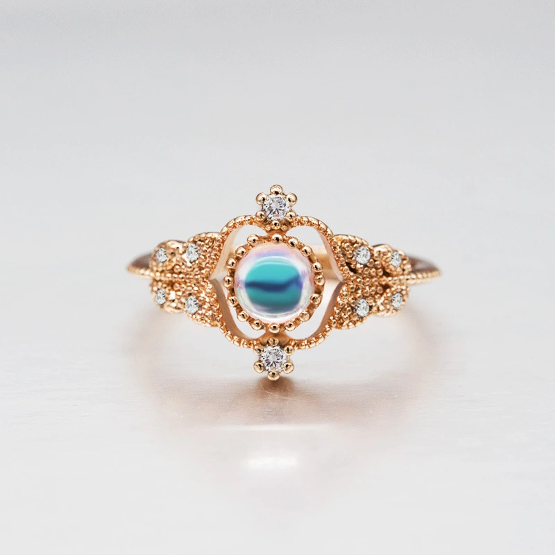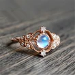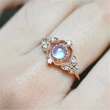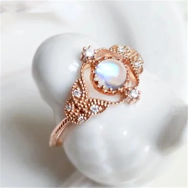 خاتم حجر القمر الرائع الأوروبي والأمريكي الجديد، خاتم إكسسوارات نسائية مطلي بالنحاس والذهب الوردي مرصع بالزركون، خاتم حفلات