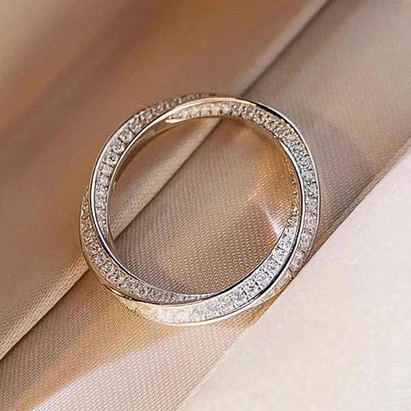 خاتم كلاسيكي مرصع بأحجار الزركون المقلد بأربعة مخالب للنساء، خاتم ذراع ملتوي مزدوج اللون، خاتم خطوبة وزواج للنساء