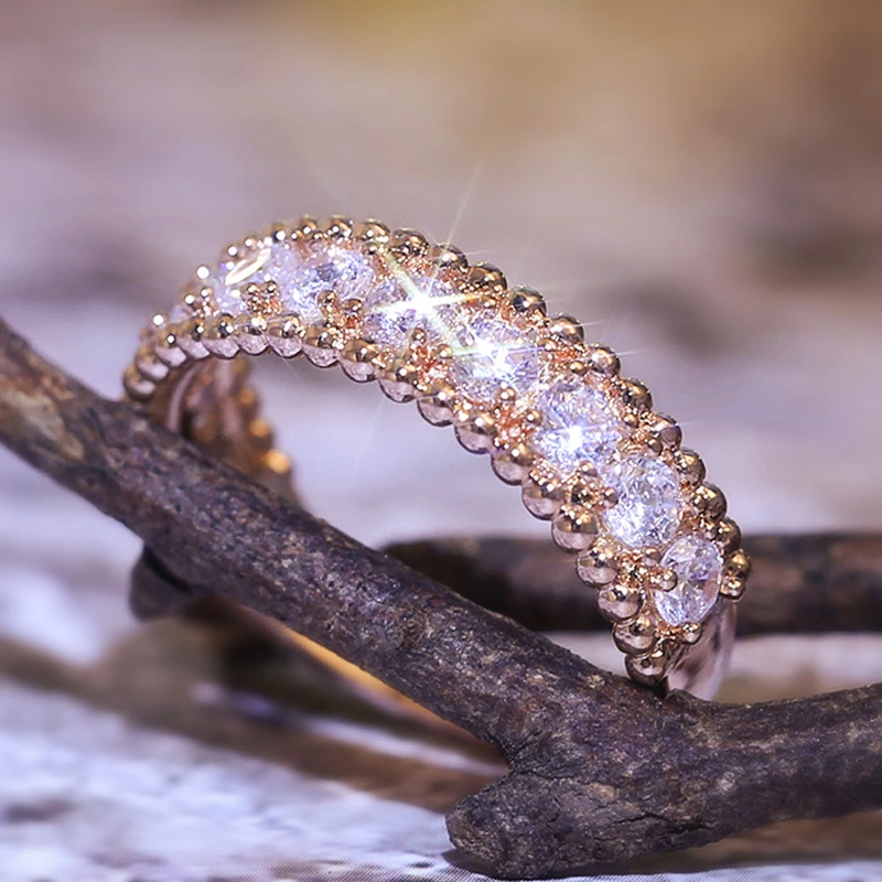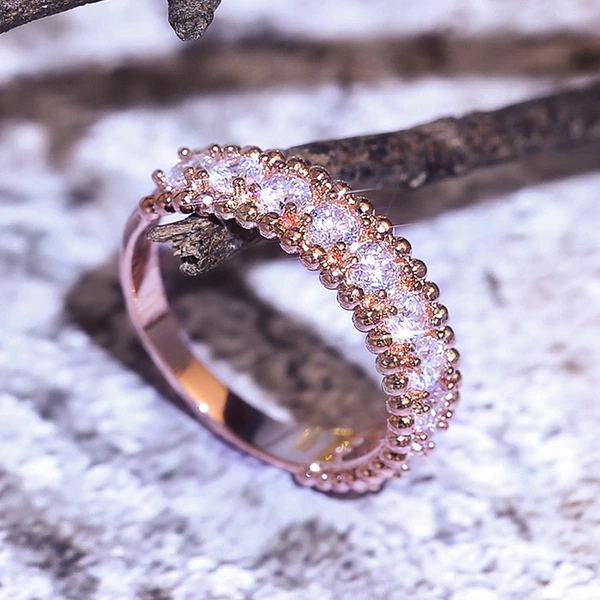 خاتم خطوبة بسيط مرصع بالزركون على الطراز الكوري الجديد للنساء، خاتم مطلي بالذهب الوردي بالجملة