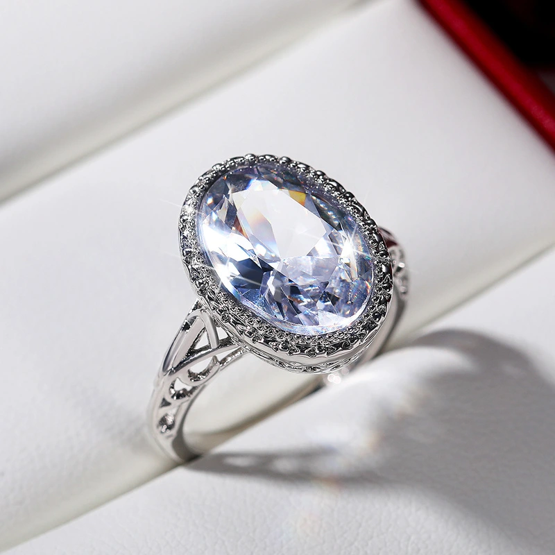 خاتم خطوبة بيضاوي من التوباز بتصميم أوروبي وأمريكية رائج البيع، خاتم رائع من الزركون