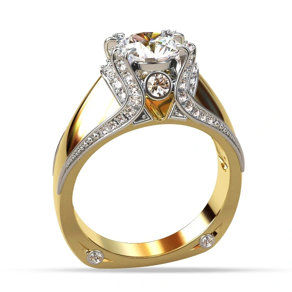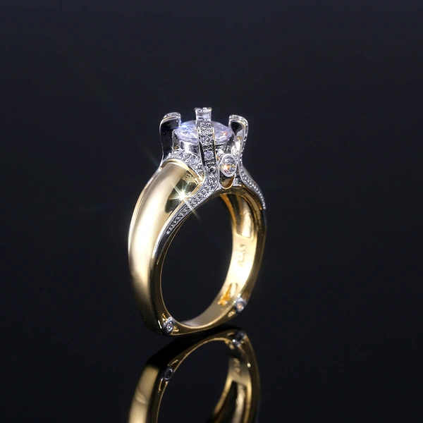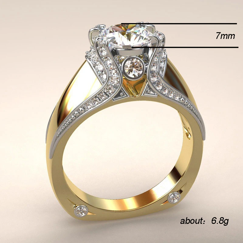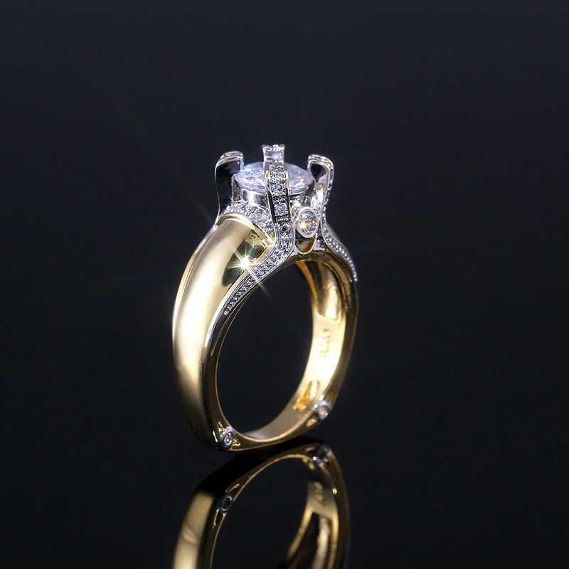 خاتم كلاسيكي مرصع بأحجار الزركون المقلد بأربعة مخالب للنساء، خاتم ذراع ملتوي مزدوج اللون، خاتم خطوبة وزواج للنساء