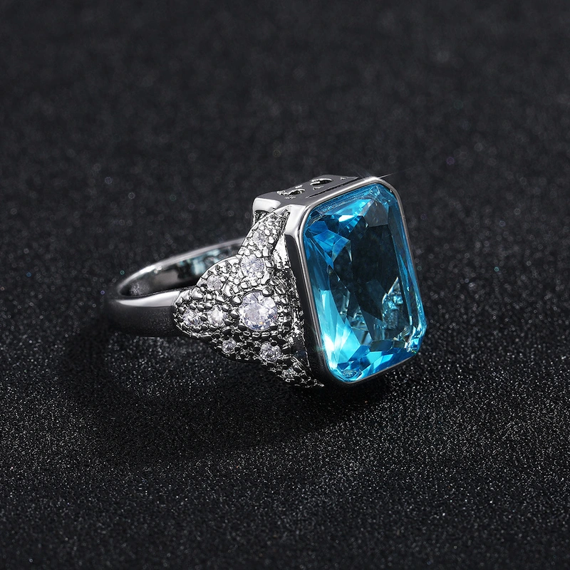 خاتم خطوبة عصري جديد من البلاتين مرصع بالزركون بتصميم مربع كبير، بتصميم أوروبي وأمريكية