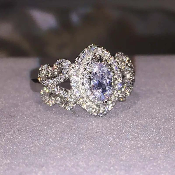 خاتم زفاف جديد من الزركون اللامع على شكل عين حصان إبداعي مجوهرات حية للنساء