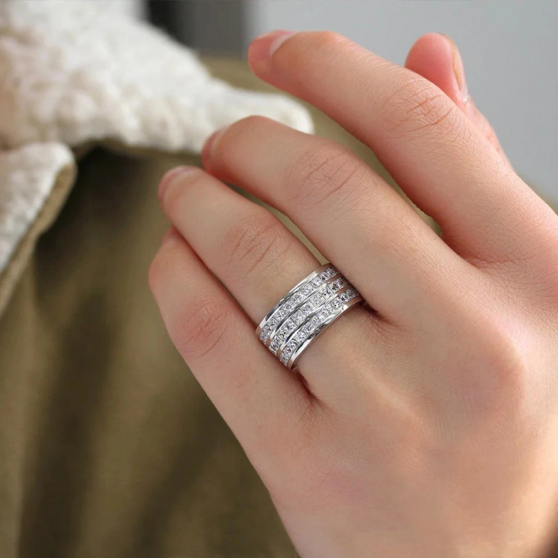 خاتم خطوبة فاخر من السماء المرصعة بالنجوم على الطراز الأوروبي والأمريكي مكون من ثلاث طبقات على طراز الهيب هوب العصري