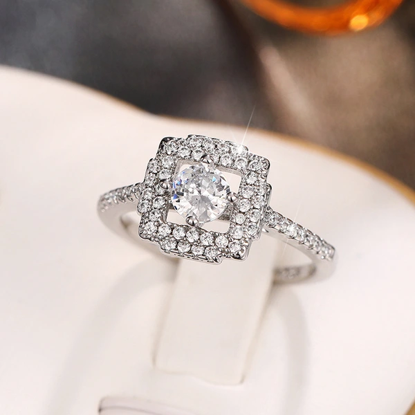 خاتم الأميرة المربع الجديد الأكثر مبيعًا على الطراز الأوروبي والأمريكي المرصع بالزركون مجوهرات نسائية خاتم خطوبة وزواج