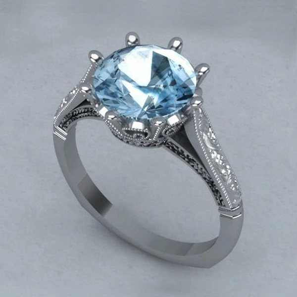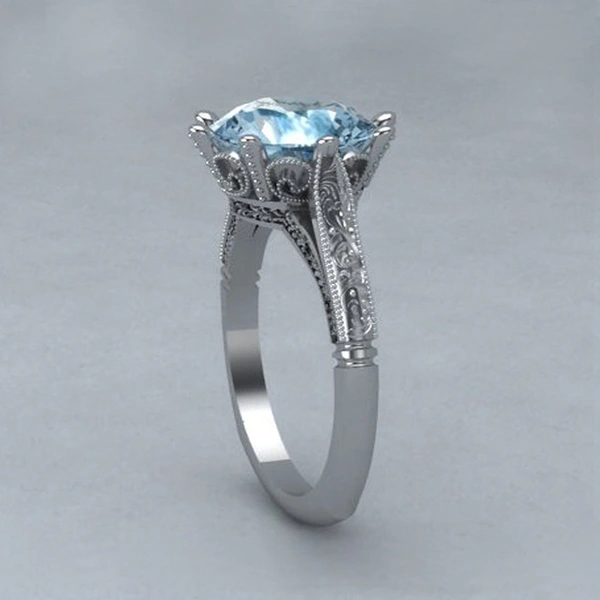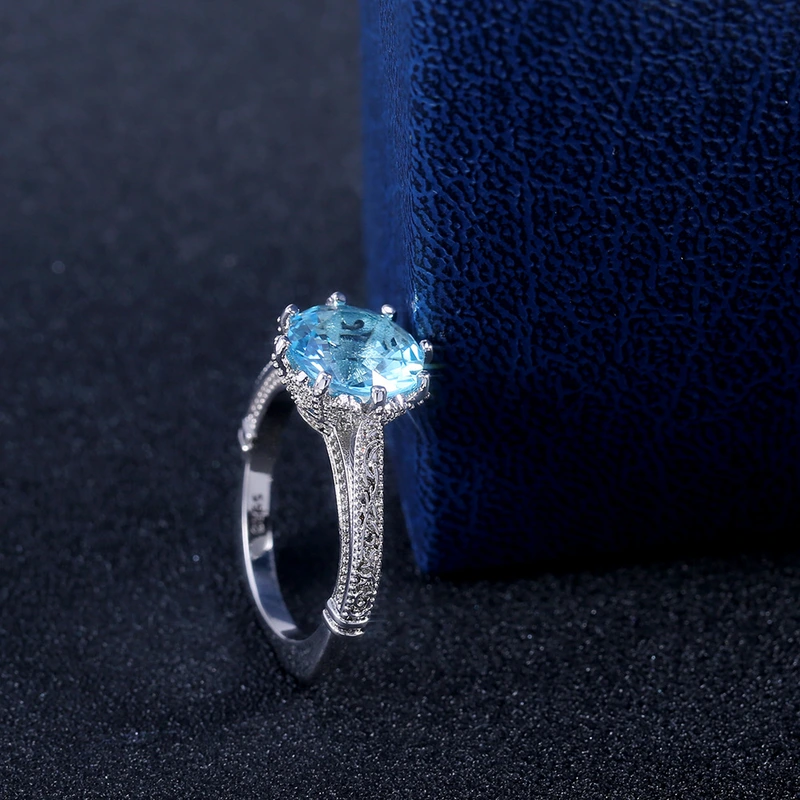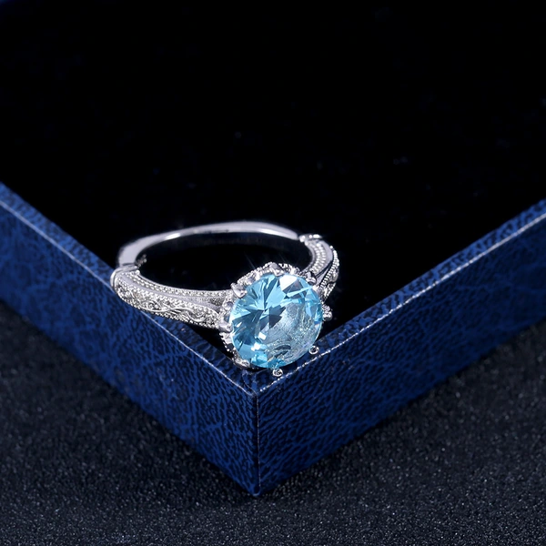 خاتم خطوبة من الأحجار الكريمة الزرقاء البحرية الجديدة الأكثر مبيعًا للنساء مرصع بالزركون للبيع بالجملة