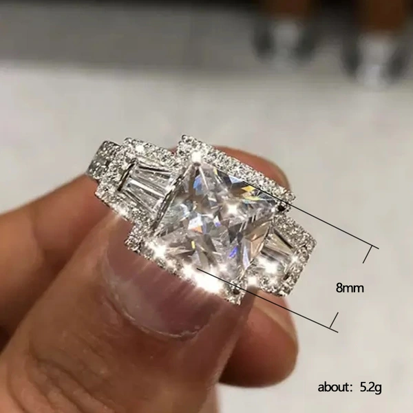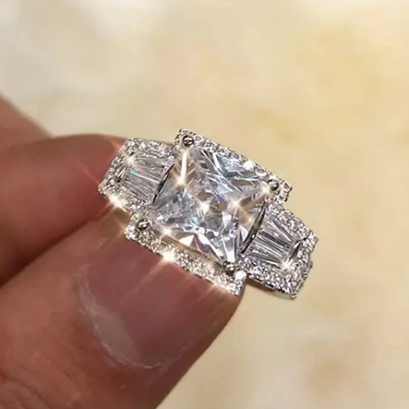 خاتم الأميرة المربع الجديد الأكثر مبيعًا على الطراز الأوروبي والأمريكي المرصع بالزركون مجوهرات نسائية خاتم خطوبة وزواج