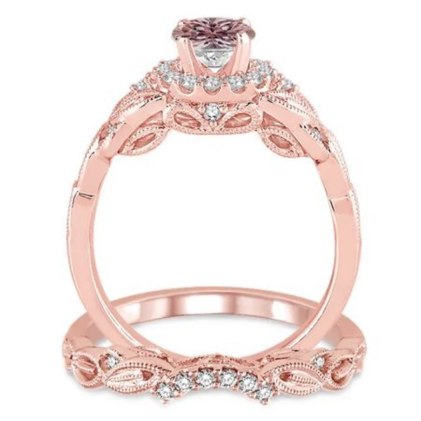 خاتم خطوبة نسائي جديد على الطراز الأوروبي والأمريكي الرائع مزين بالزهور باللون الشمبانيا ومطلي بالنحاس والزركون والذهب الوردي