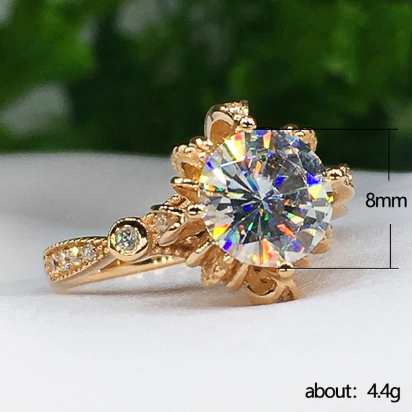 خاتم خطوبة نسائي جديد على شكل زهرة أوروبي وأمريكي شائع مطلي بالنحاس ومرصع بالزركون
