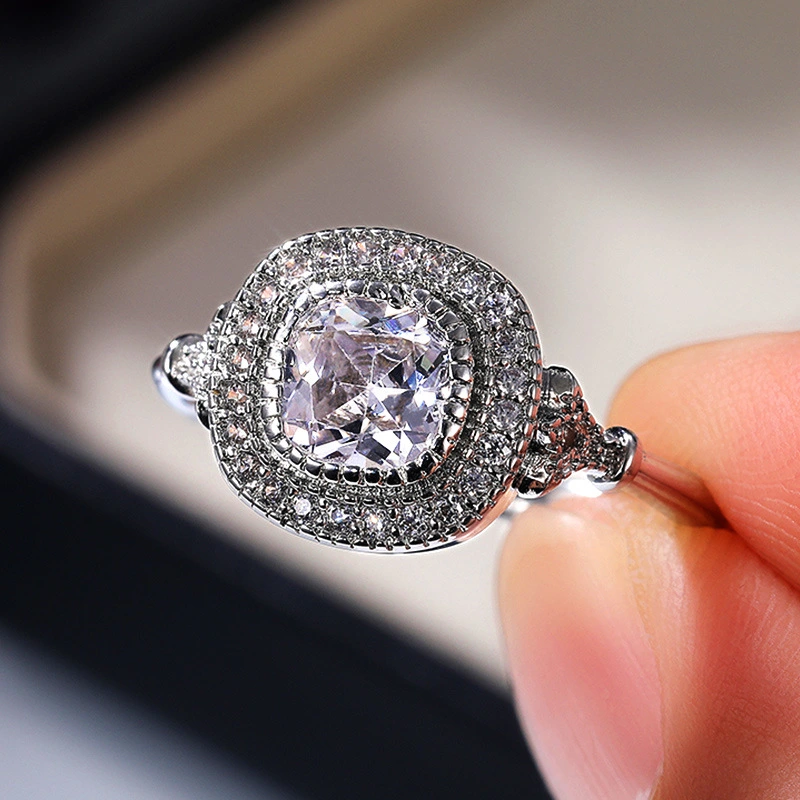 خاتم الأميرة المربع الجديد الأكثر مبيعًا على الطراز الأوروبي والأمريكي المرصع بالزركون مجوهرات نسائية خاتم خطوبة وزواج