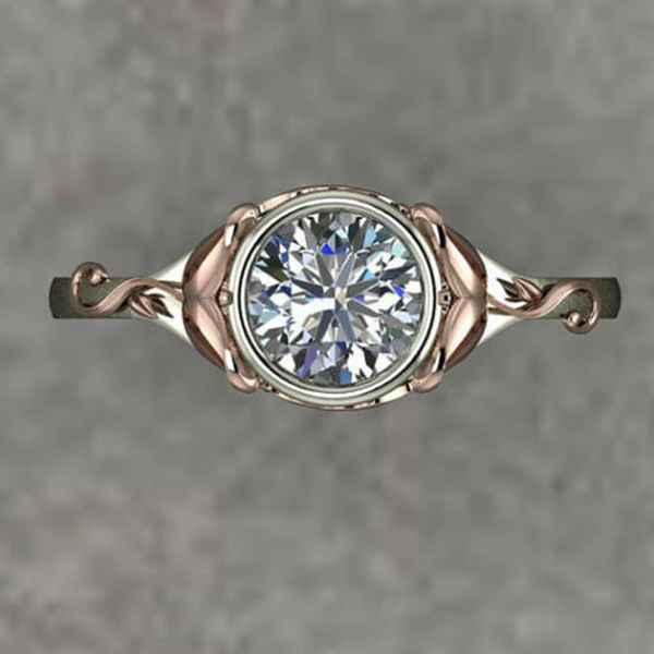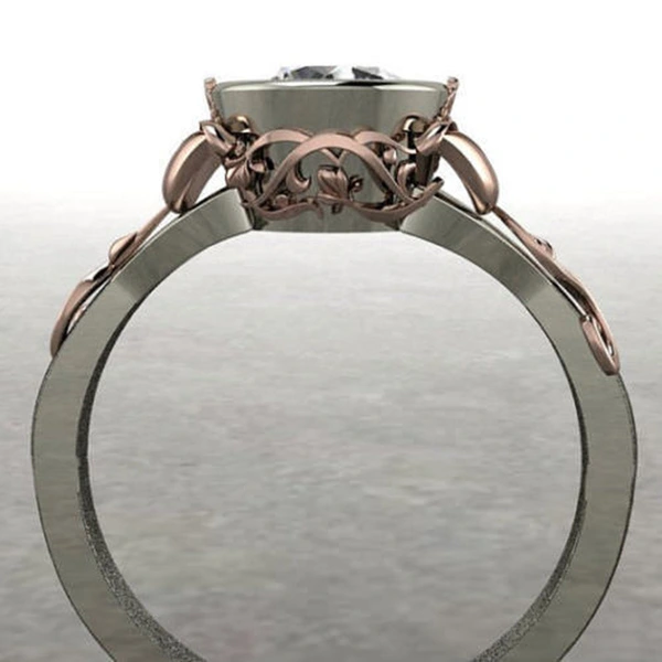 خاتم خطوبة نسائي كلاسيكي جديد من الألماس بمرآة بلونين أوروبي وأمريكي رائج البيع