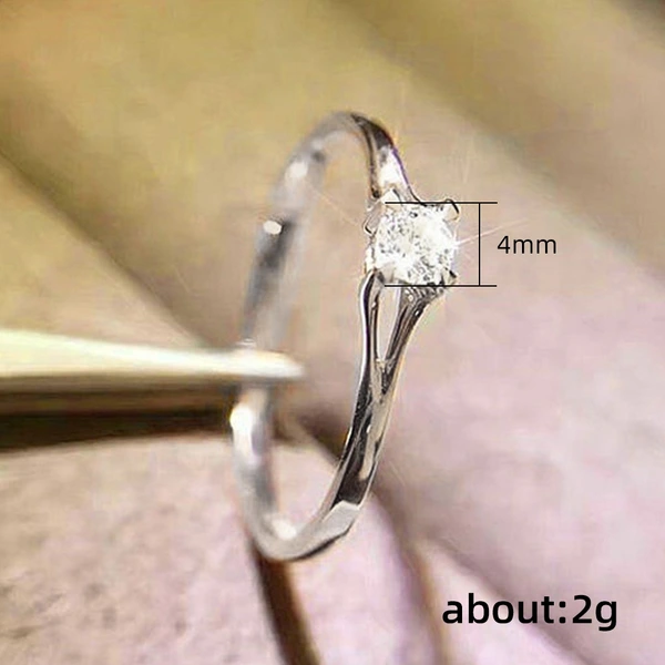 خاتم خطوبة نسائي كلاسيكي من الزركون بتصميم بسيط وذو أربعة مخالب، خاتم خطوبة مطلي بالنحاس من الذهب الأبيض