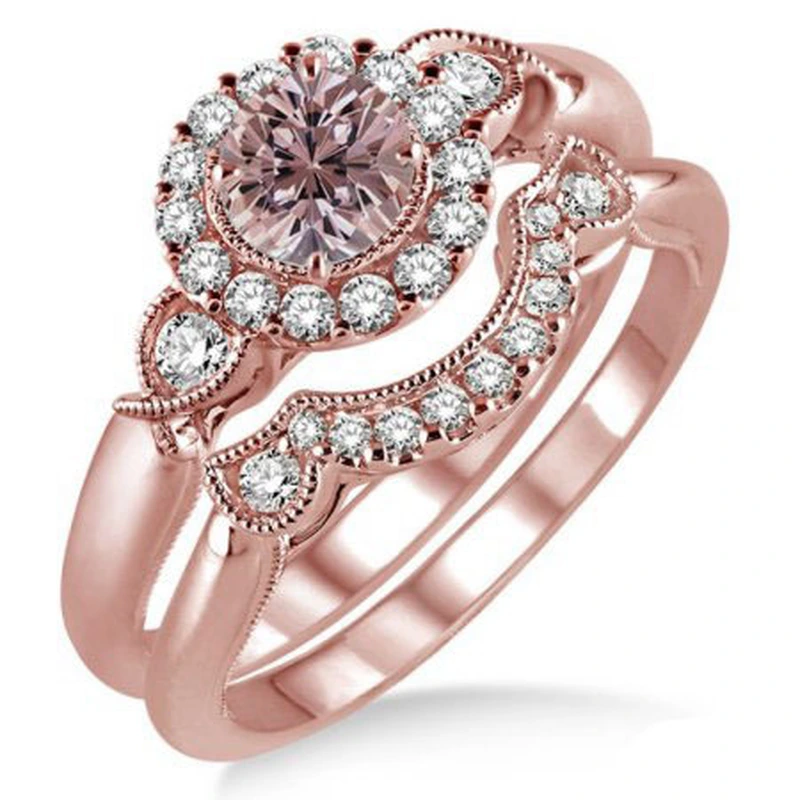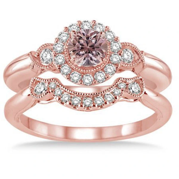 خاتم خطوبة نسائي من الذهب الوردي مطلي بالنحاس الرائع بتصميم أوروبي وأمريكي مزين بالماس المقلد بلون الشمبانيا الزهري