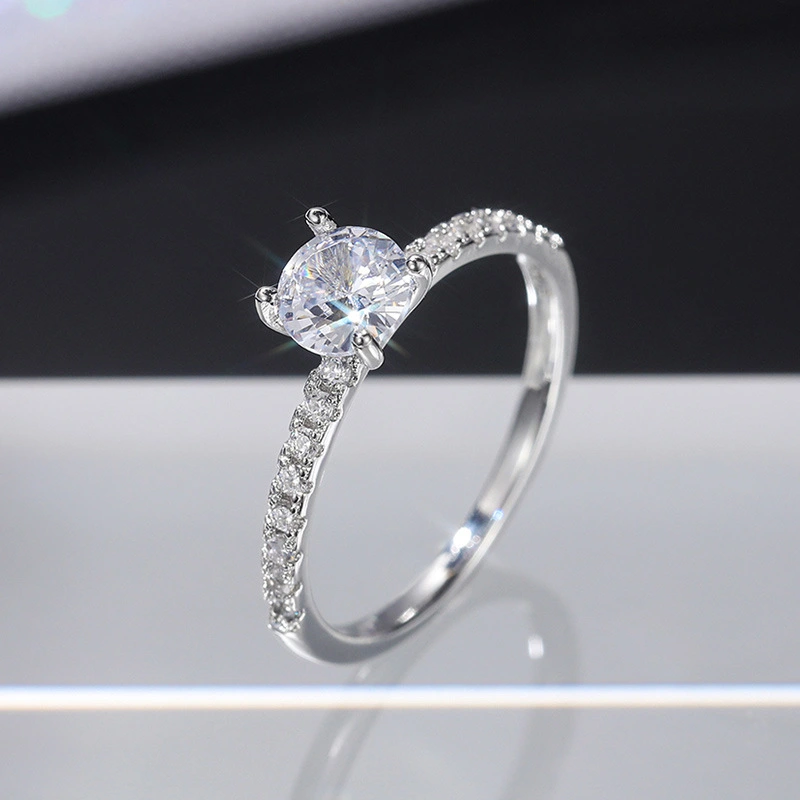 خاتم خطوبة وزواج بسيط من الزركون الأوروبي والأمريكي الشهير مطلي بالنحاس والذهب الأبيض وخاتم ألماس مقلد