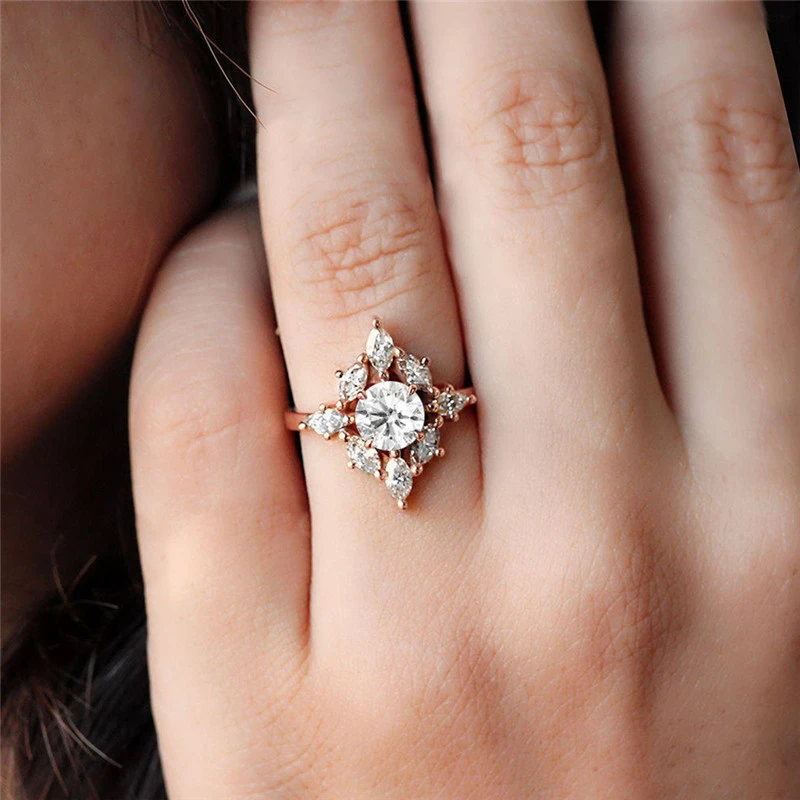 خاتم خطوبة وزواج جديد من المجوهرات الأوروبية والأمريكية مرصع بالزركون من الذهب الوردي للنساء