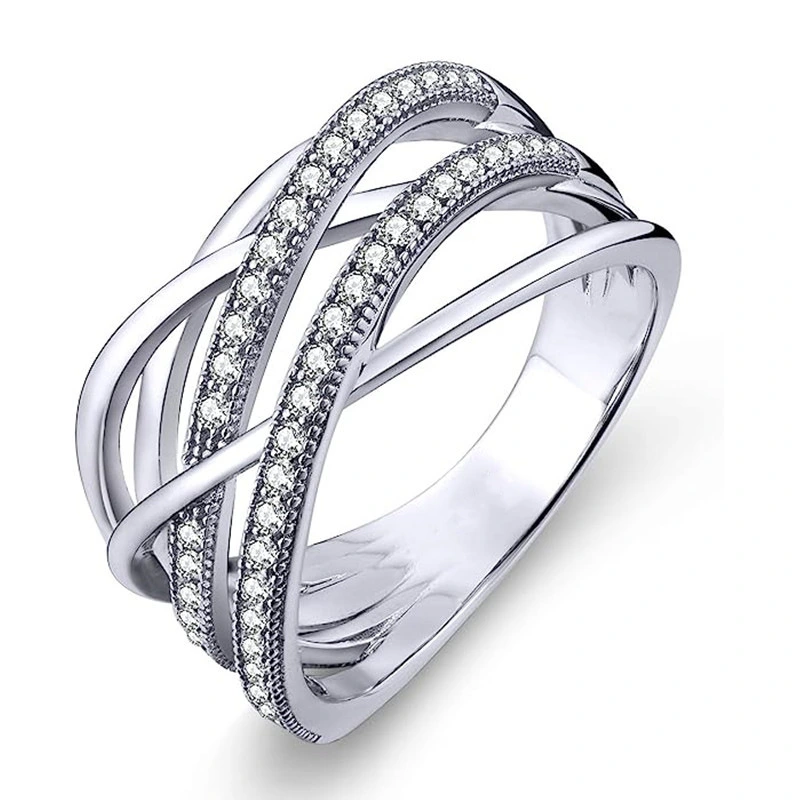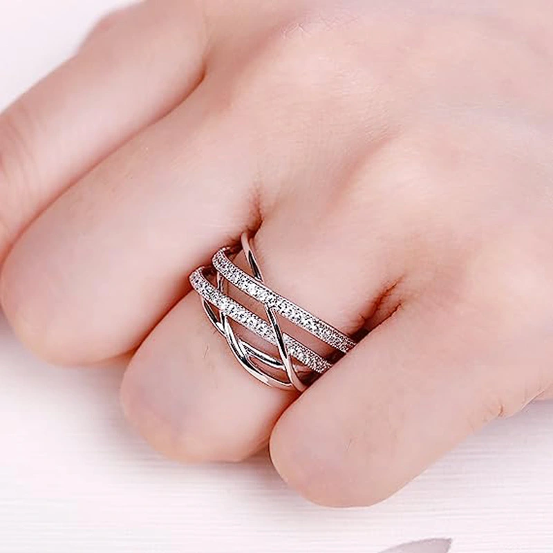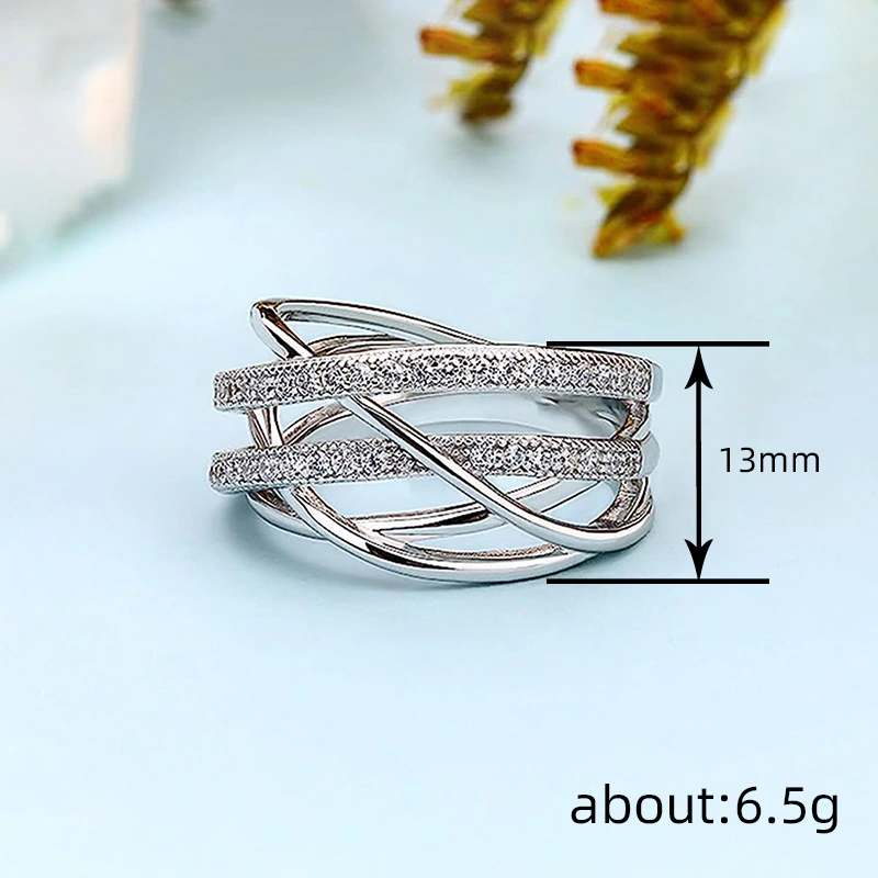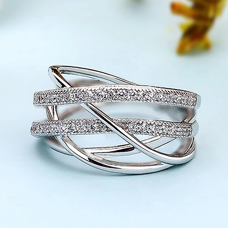 خاتم خطي جديد متعدد الطبقات للنساء، مجوهرات نيتش عصرية وفردية، تصميم مرصع بالزركون الدقيق