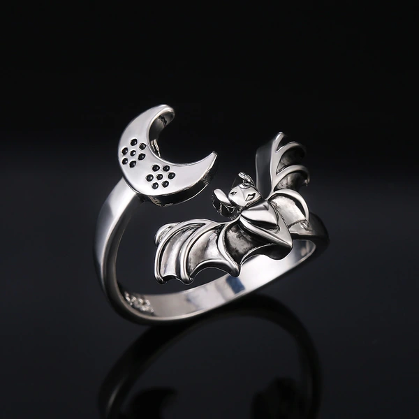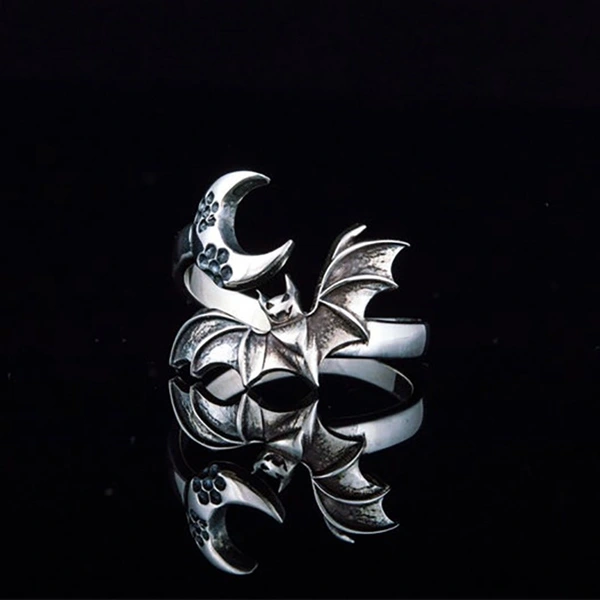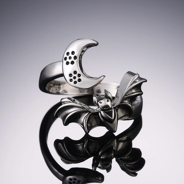 خاتم خفاش رائع بتصميم ليلة مقمرة عتيقة للبيع بالجملة خاتم عصري للرجال والنساء