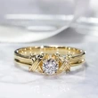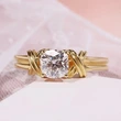 خاتم كلاسيكي مرصع بأحجار الزركون المقلد بأربعة مخالب للنساء، خاتم ذراع ملتوي مزدوج اللون، خاتم خطوبة وزواج للنساء