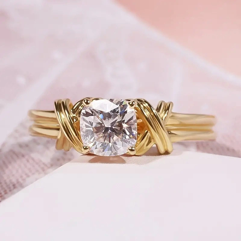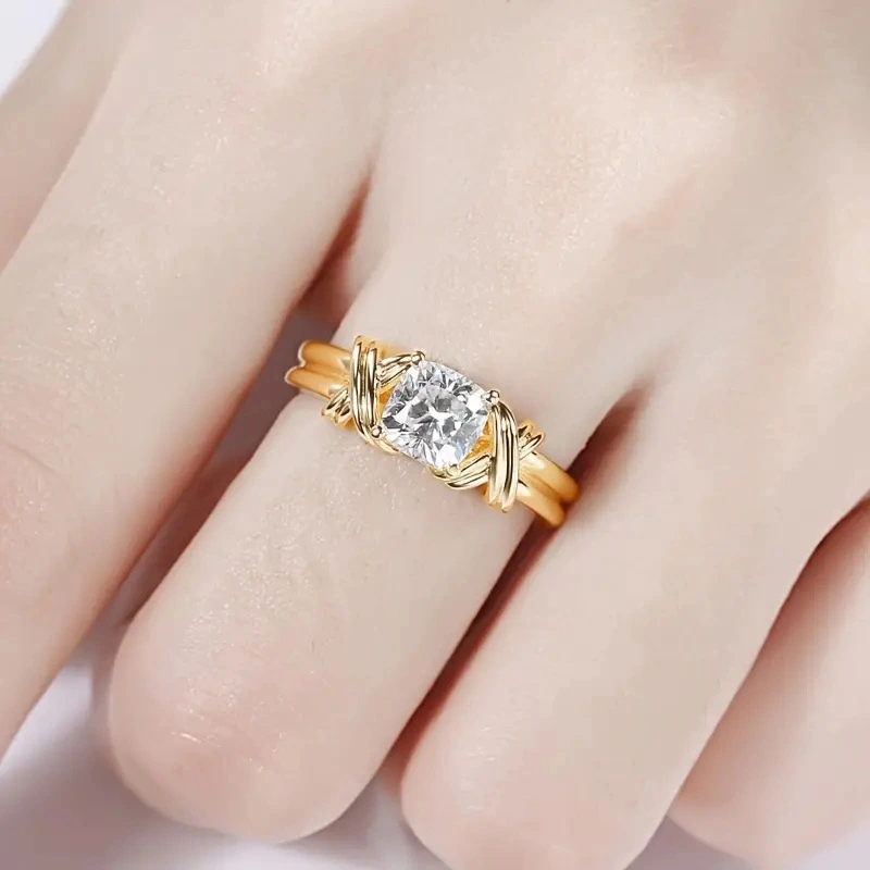 خاتم دائري بتصميم أوروبي وأمريكي خفيف فاخر ذو طابع جمالي ملفوف على شكل صليب خاتم مربع سميك للنساء