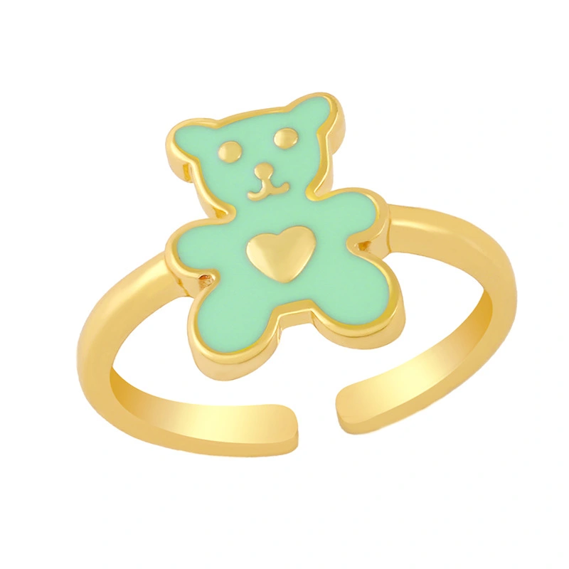 خاتم دب الحب اللطيف المخفض على الطراز الأوروبي والأمريكي خاتم زيتي ملون على شكل قطرة ماء مجوهرات على طراز الفتيات rim58