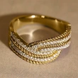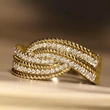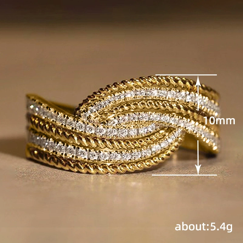 خاتم كلاسيكي مرصع بأحجار الزركون المقلد بأربعة مخالب للنساء، خاتم ذراع ملتوي مزدوج اللون، خاتم خطوبة وزواج للنساء