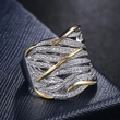 خاتم ذهبي متعدد الطبقات مرصع بالزركون متعدد الطبقات بلونين منتج عصري رائج البيع